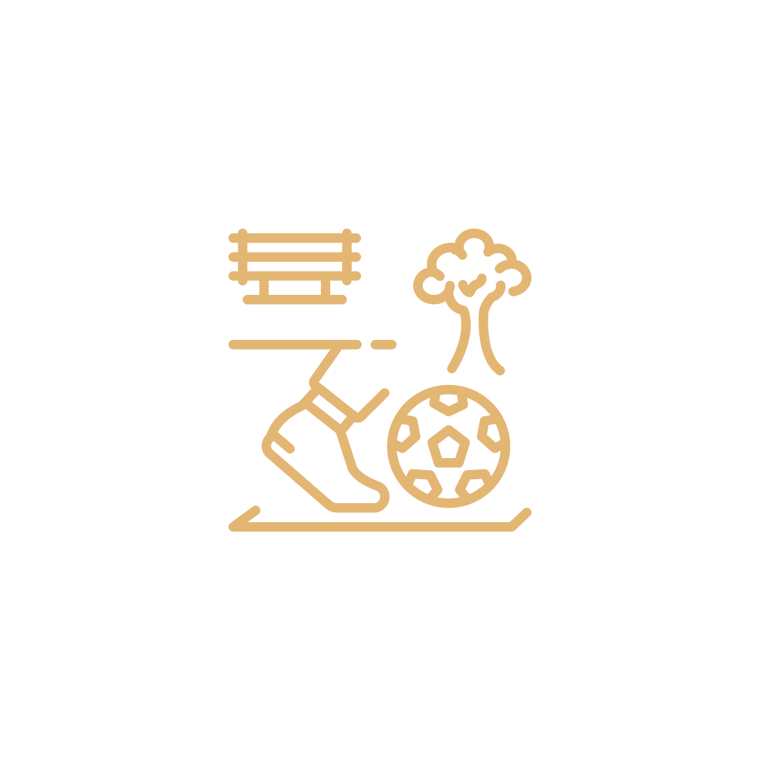 An area with public recreational facilities: a mosque, a garden, basketball court, football field, kids park and meeting rooms