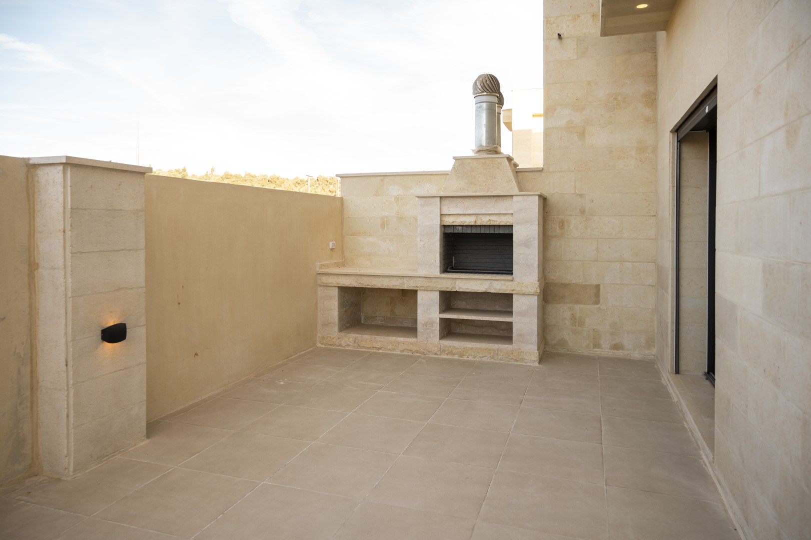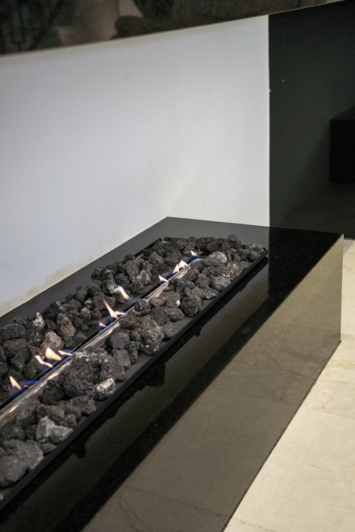 BBQ and waterfall in the outdoor area